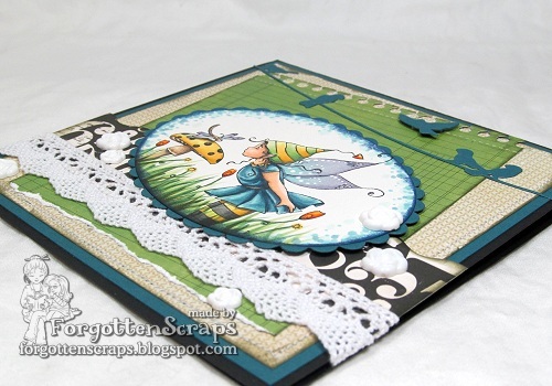 The products I used from Little Miss Muffet Stamps are Clover Dancing with Dragonflies rubber stamps and Birds on a Wire metal die. There’s lots of other things as well and I’m even using up some of my white resin flowers that I like to stash away.