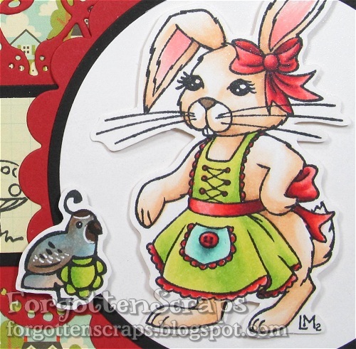 Here’s a close up of the image and you’ll also see Quella the Quail on there!  I thought she’d be a fun friend for Rachel.  🙂  I also enjoyed blending the blues and browns to give her a more realistic color scheme.