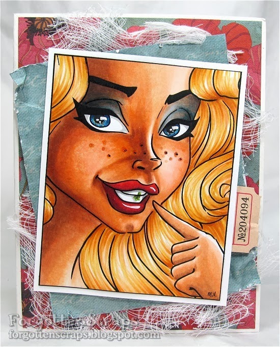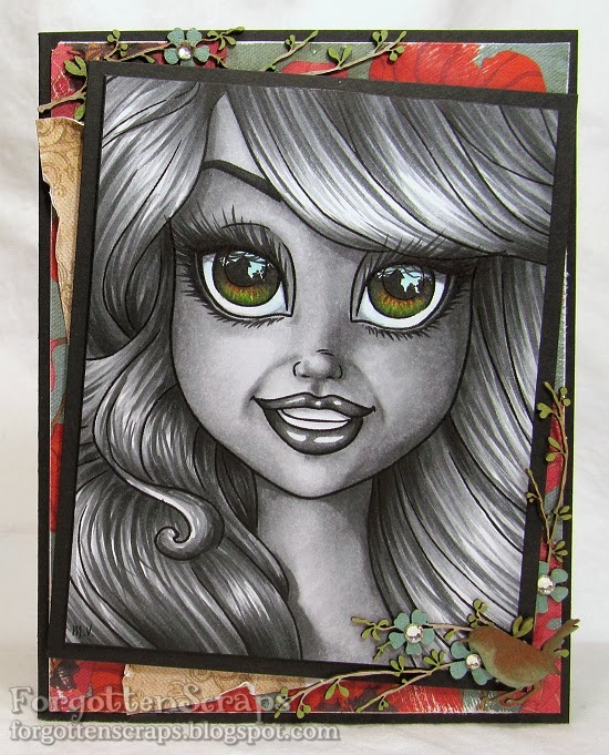 This image is Phoebe and I used the closed cropped version that comes with the combo. I colored her using neutral tones then added all the colors in her eyes with browns, blues and greens. This one is for the harder challenge.