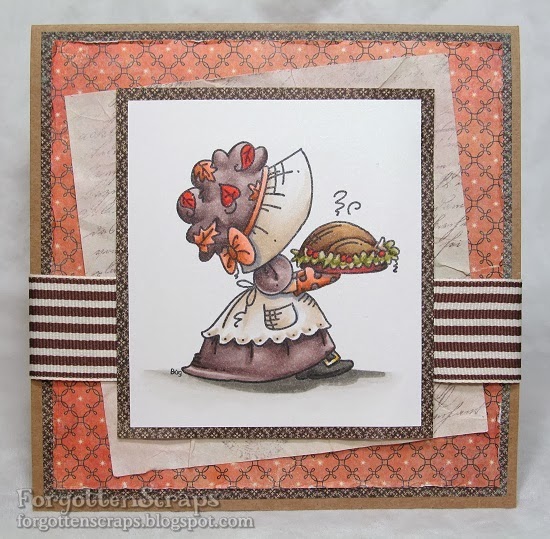 Happy Thanksgiving to those celebrating today! I couldn’t think of a better card than to show one using Fancy Sunbonnet Thanksgiving from Little Miss Muffet Stamps. This one was is available in rubber in the LMMS store. It’s such a fun image to color and that turkey will make for a yummy meal, I’m sure. 😀