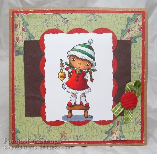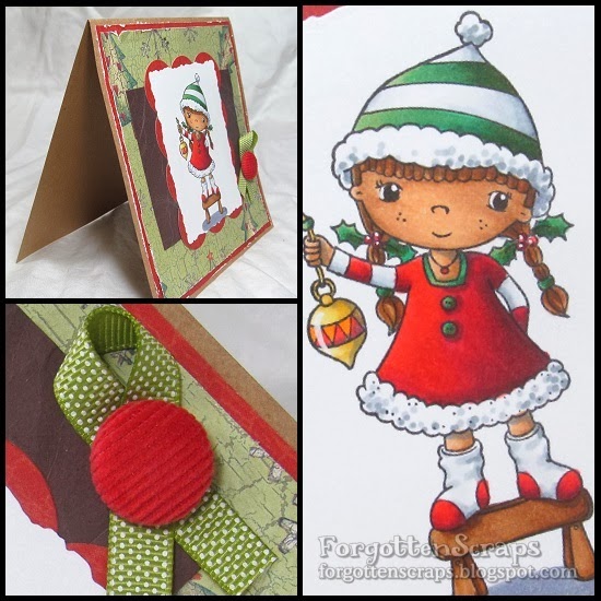 This image is Swings ‘n Slides Deck the Halls from Little Miss Muffet Stamps and I thoroughly enjoyed coloring her up! I can’t say much for my card as I don’t like the paper nor the layout, but the coloring part was fun. And check out that red dress… it almost looks velvety! I might have to experiment with that some more.
