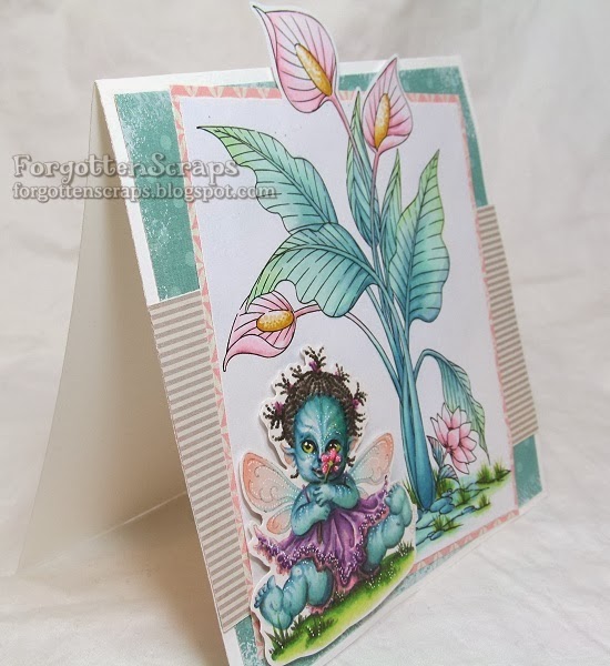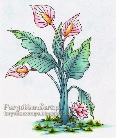Here’s a fun project I wanted to share using two images, Baby Fairy Flora from Mo Manning (Stampavie) and Anthuriumns Garden from Make it Crafty. I had recently watched the Avatar movie and wanted to color something using the bright fluorescent colors from that world.  So I had used a bit of creativity and decided to color up the fairy rubber stamp and the large flower background.