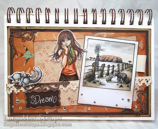 For this project I pulled out the journal and added another page.  I also combined it with the Australian Day challenge and a lifelong dream of mine… I’m sure putting it all together will easily reveal that I want to be Seductive Barb visiting Zoe in Australia.  🙂