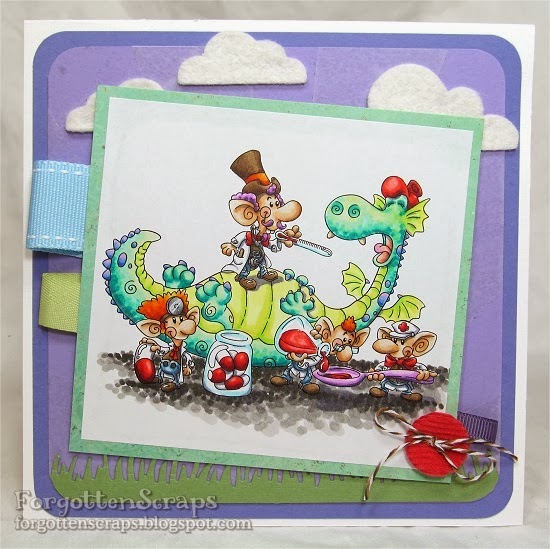Is a dragon an animal?!  I hope so.  This card has been sitting in draft mode and I just can’t wait any longer.  LOL  The challenge at The Paper Shelter is “Animal Magic” and I’m going to submit this entry.  The image(s) on this project is called Healing the Dragon by The Paper Shelter which is actually four individual stamps merged together. But I liked how they all came together in this scene and colored it as is.