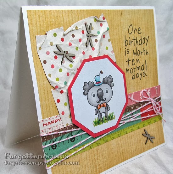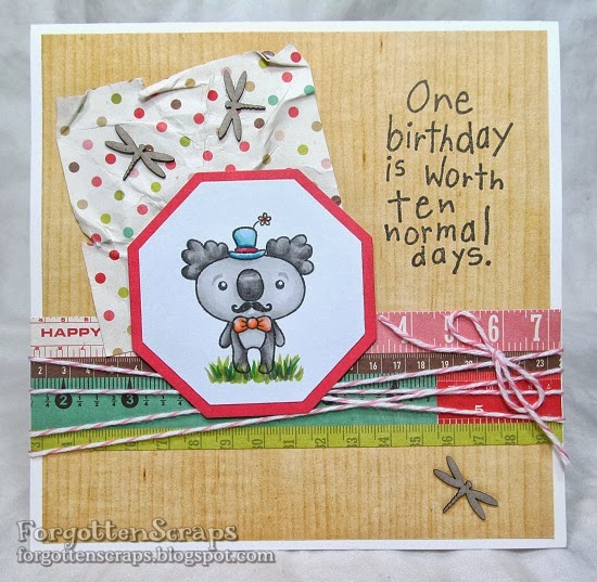 Here’s a birthday card I had fun with! The image is Animal Cracker Circus Koala from Imaginisce and the sentiment is from Inkadinkado. I have created a few birthday cards with images from this series and this is my last one to show. Circus animals area always fun to color because of the little bits of color added from the clothing.