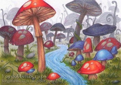 The crazy challenge at Make it Colourful this month is all about an atmosphere perspective… meaning to show the depth of the picture as it fades back into the distance. Zoe provided with a description, samples and design team inspiration that you can read all about it. For me, I started with the Mushroom Forest from Make it Crafty and then tried to figure out what I was doing. LOL