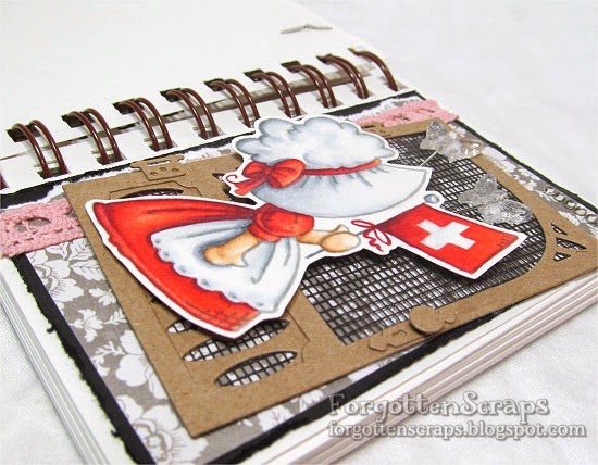 The challenge at Little Miss Muffet Challenges this round is about making your project small, as small as an artist trading card (ATC) or even smaller. This is the perfect opportunity to pull out my ATC Journal! For this project I’ve used Fancy Sunbonnet Patriotic Flag (with a blank flag) and the new Marine Creek Door Metal Die from Little Miss Muffet Stamps.