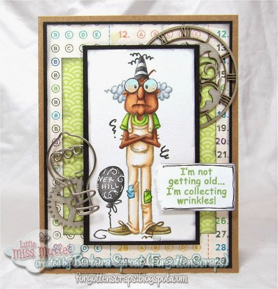 I’ve been on a roll this month and have managed to create more projects then the last couple months combined – it’s been great!  So today, I’m excited to share another one of those… this one is using Grandpa’s Wrinkles rubber stamp available at Little Miss Muffet Stamps.  I just love this guy and his sentiments!  LOL