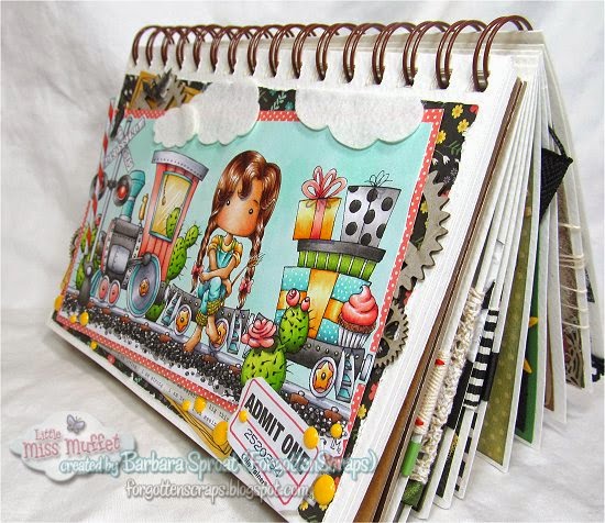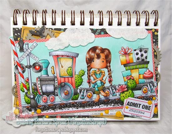 Get ready, I have a project for you to drool over!  How do I know… cuz I’m drooling too.  LOL  This is the Linking Train scene I created last week and have put it on a journaling page.   It allowed me to use a slightly larger surface and also fit the linear size a bit better.  And true to form… I’ve added everything but the kitchen sink to the page.  Beaming!