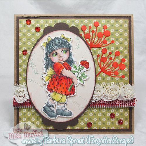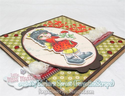 I gave this gal a detailed face. Usually, the dots on the stamp are used as the pupil in the eyes, but this time, I used them for the center edges of the eyes. I also colored her dress with some black seeds so it looked like a strawberry dress. Hope you enjoy and have a great Sunday!