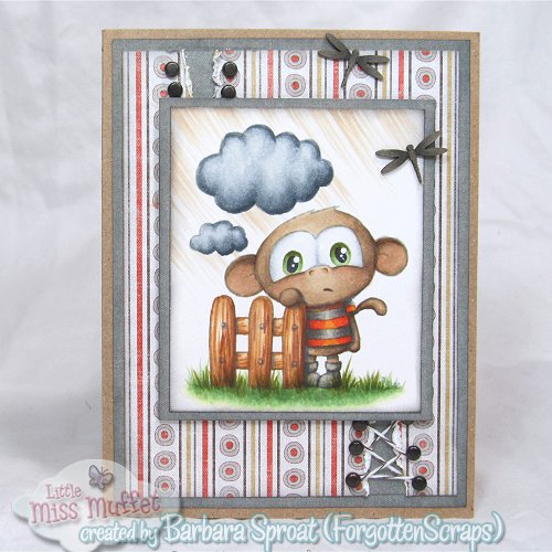 This project uses Under the Weather Chester and is a new rubber stamp from Little Miss Muffet Stamps. It comes with two sentiments which are the right size to be used in the large cloud. However, I chose not to use a sentiment this time.