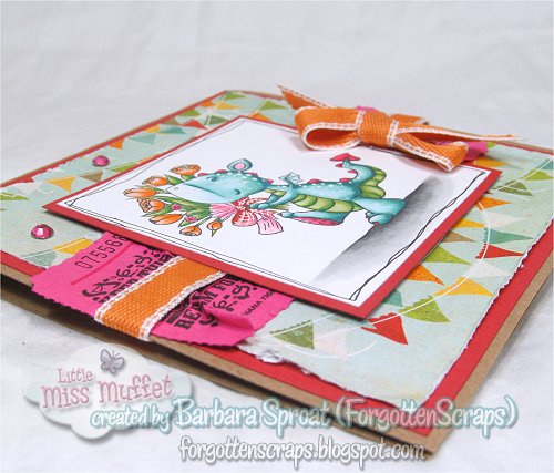 This card uses Fergus with Bouquet from Wild Rose Studio. I colored it with the Marvy Le Plume markers then went with a bright and cherry color palette with the papers. The raffle tickets are actually real ones that I had to save to see if my number was chosen. It wasn’t. But at least I can use them for a card and still get some benefit out of them. He he he