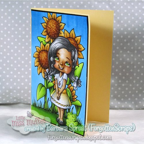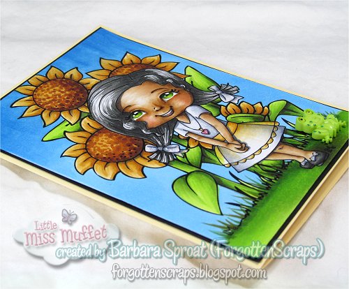 Meet Polka Dot Pals Petunia … she’s the monthly dollar digi that is being featured in the progressive challenge on Facebook.  I didn’t have a lot of time coloring lately but with a little time here and there, I was able to get the scene completed.  I left the dress for last because I didn’t know what color it should be.  With the advise from the gals in the FB group, I chose white and yellow.  Not sure I got the “bang” I was looking for she still looks nice and I like how the project turned out.  So I can count that as a success.