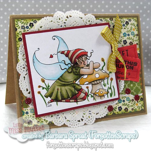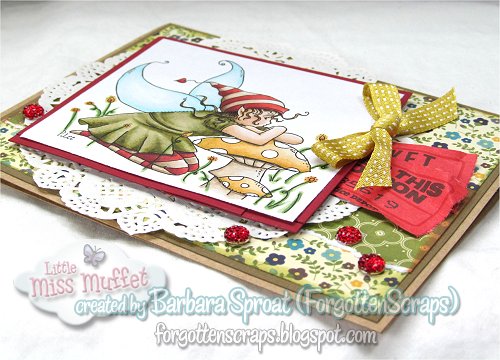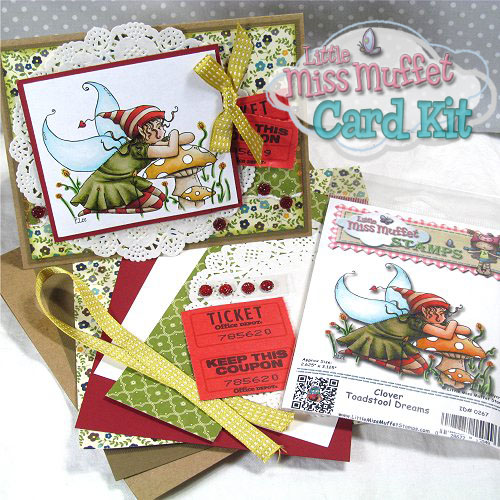This is the Clover Toadstool Dreams Card Kit from Little Miss Muffet Stamps and includes the rubber stamp. These were actually the original colors that were used for the label of the stamp too. I paired it with a little bit of red and yellow for a good visual punch.