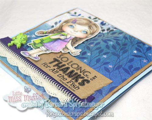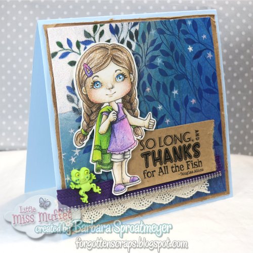 This is Polka Dot Pals Trillian from the Towel Day release and colored it with Polychromos pencils. I like how her face turned out and using the pencils was a lot easier than using the markers. That allowed me to build up the area and take it slow. I also used the Thanks for All the Fist Sentiment and printed that out on Kraft paper.