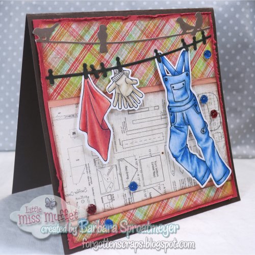 I used some time to clean up the house before I left for vacation and while cleaning my desk, this card came to be. All the supplies just seemed to already be on my desk. LOL. I’ve used Hanging Clothes Working, Clothes Line metal die, Birds on a Wire metal die, all from Little Miss Muffet Stamps. Come on over and show us a card in the LMM Challenges and I hope you’re all having a great summer!