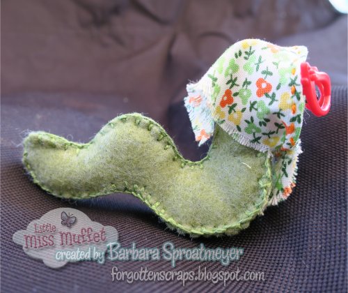This is Evelyn Inchworm which is a critter from Wee Wonderfuls pattern book. I didn’t use the pattern from the book but winged it. The glasses are Barbie Doll accessories and are a bit too big but I tied them in the back and tried to make it work out. They stick out a bit more than I want but I think it’s OK.