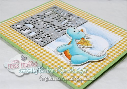 Sometimes I buy cute stamps just to entice my daughters to color along with me.  I think this one was proper bate so I hope to see some activity on that side of the desk.  This is Magical Dragons from My Favorite Things and I used the Bright Side of Life Chipboard sentiment from Make it Crafty.