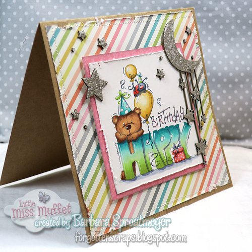 What a great card! Love the layering, the stitching and layout along with this very cute colored bear!