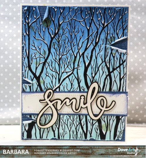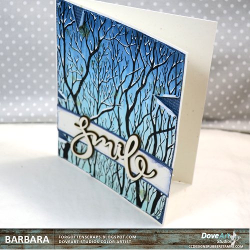 I’m getting ready for some snowing thoughts so I used the new Trees Silhouette from DoveArt Studios that was recently released and created my own snowy scene. The stamp was colored with the blues then I went back over the image with a white gel pen. Lastly, there was some sparkle spray that I tried out but it created blobs so I try to ignore those.