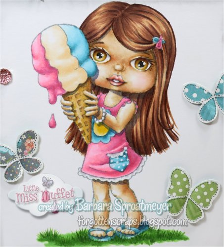 Welcome to a new Anything Goes challenge at Little Miss Muffet Challenges. For this week, I created a summer card using Polka Dot Pals Kyree. However, she’s not available in the store but you don’t want to miss out on these details to get her… she’s free!