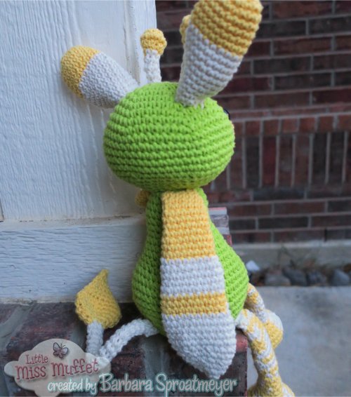 Another monster from the Edward’s Crochet Imaginarium by Kerry Lord pattern book. This one was started by my sister who did the body, arms, legs and ears. So really all I had to do was the antlers, eyes, muzzle and tail. He’s a brother to Cauli and they will both be loved by brothers too. For his name, I wrote down all that I thought he was … penguin, deer, bunny, dragon… then used letters from each to create the name.