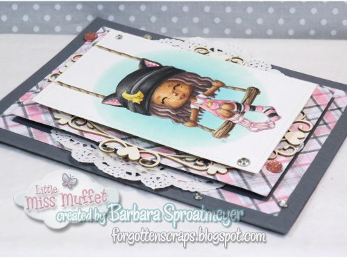 1. She is so beautiful.. I love your card too.. Very pretty with lovely papers. A perfect match!I have to admit that this gorgeous image is one of my favourites, especially with those odd socks!! xx