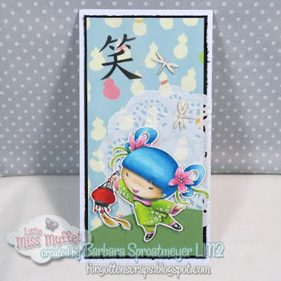Here’s another bookmark I made and this one uses Mei Li from Sister Stamps. I used an envelope I found an Daiso while on a recent shopping spree. The sentiment is a cupcake stencil for “Laugh” and the dragonflies are Make it Crafty chipboard embellishments.
