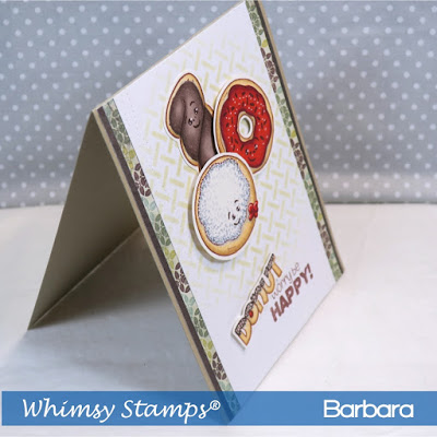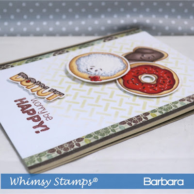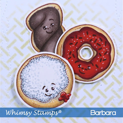 For my project today, I’ve used three products from Whimsy Stamps: Donut Birthday rubber stamp, Straight Edgers metal die and the Farmhouse Basket stencil. Be warned, this is a dangerous stamp, let me tell you! Not only was it fun to color but it also left me craving donuts. LOL This one is on my list for a movement type card so be on the look out for a second project soon. ;D