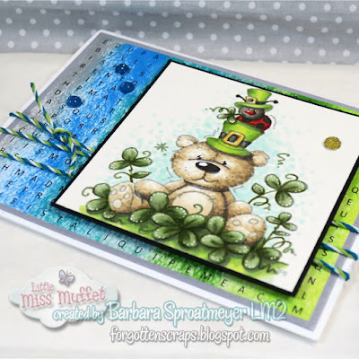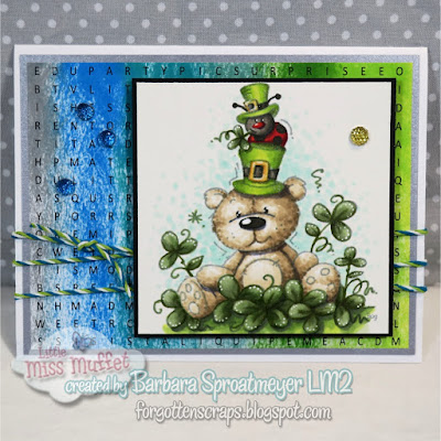 I’m pretending to be super-early for next year’s St. Patrick’s day instead of admitting that I was late again. LOL But I was in the mood for green and this stamp fit the bill. This is Theodore’s Shamrocks rubber stamp from Little Miss Muffet Stamps. The background is Word Search Birthday Sentiments digital stamp also from Little Miss Muffet Stamps which was colored with Distress inks.