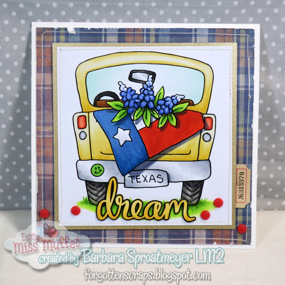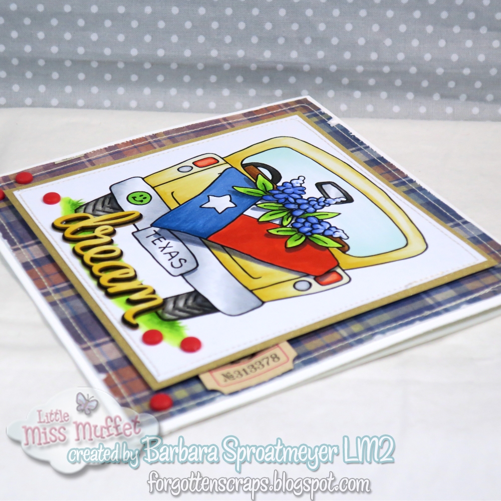 I’ve used the Pick Me Up Truck again this week and merged it with the Texas filler instead of the Watermelons. Then I paired it up with the Dream sentiment which is a Make it Crafty chipboard embellishment. This will make a great card in my stash and will probably be used up quickly. 😀