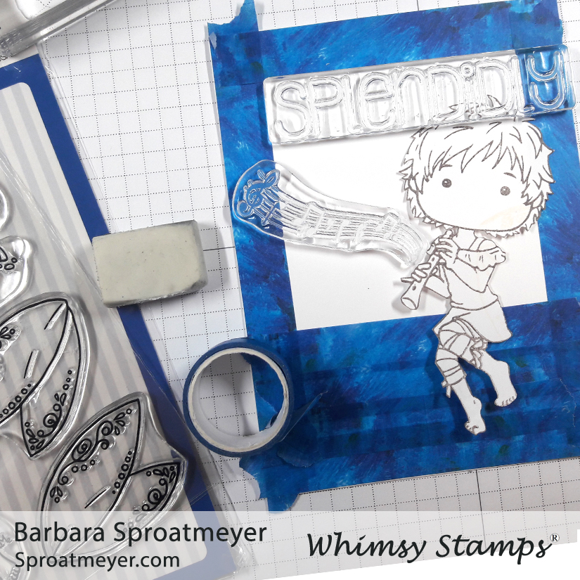To use the sentiment so it would fit on my project, I chose to reduce it to “splendid” and did this by wiping away the ink on the last two letters. I did this for each time I stamped it.