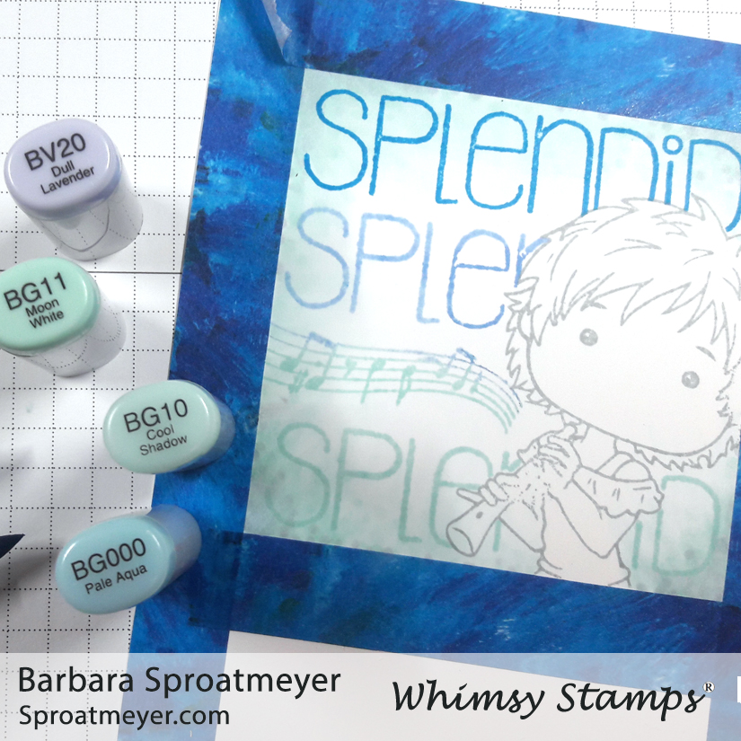 I also used the music bar element from the set to fill in the area. I could have squeezed in another “splendid” sentiment for four in a row but I actually didn’t have another blue that coordinated. So this turned out to be a happy modification as I really liked how it turned out.