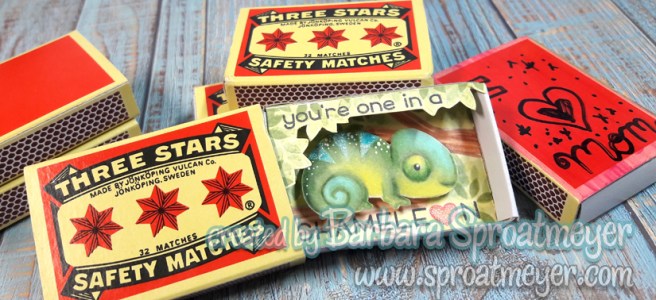 I made some more matchboxes and was able to herd my other two daughters in the room to make them too. These are fun little projects and not as intimidating as a full size image for them to tackle. We used several Lawn Fawn sets including Upon A Star, Mom + Me, and Chameleon to make these.