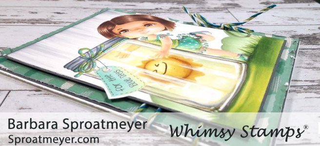 I’m excited to announce today is a new release at Whimsy Stamps and there are two new sets that I’m using today – Polka Dot Pals Atlas and the Atlas Jar. To create this scene, I used the sun and character from Polka Dot Pals Atlas set then the jar, tag and twine from the Atlas Jar set. This was a challenge for me to color sunshine in a jar but I think it worked out alright.