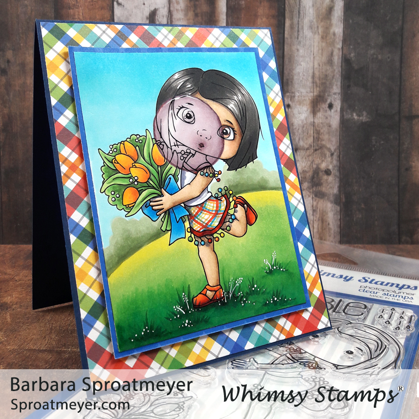 I’ve brought out Polka Dot Pals Atlas again with an added a puckered-up face from Polka Dot Pals Mason which was released yesterday. I thought sweet flowers and a kiss would be perfect to send someone. But I didn’t expect the creative juices to take over as I changed that kiss into blowing bubble gum. Now that’s one giant bubble!