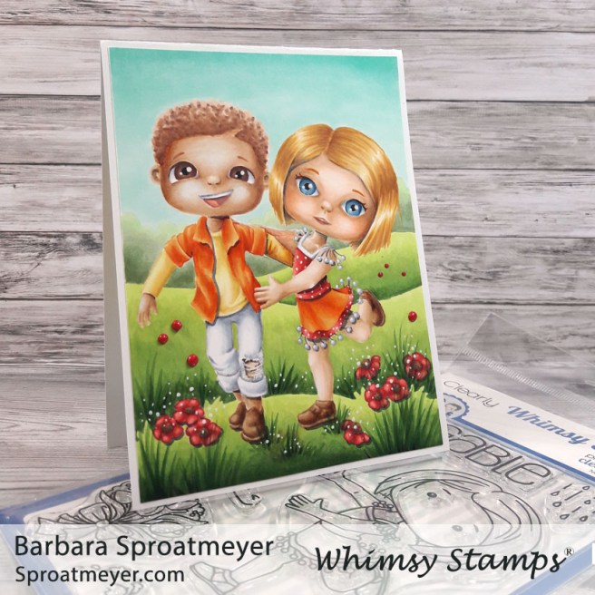 The flowers are from the Polka Dot Pals Syeda stamp which makes for a nice ground. I added some “magic” with the white gel pen and also some smaller red dots for flowers on the background hills with Liquid Pearls.