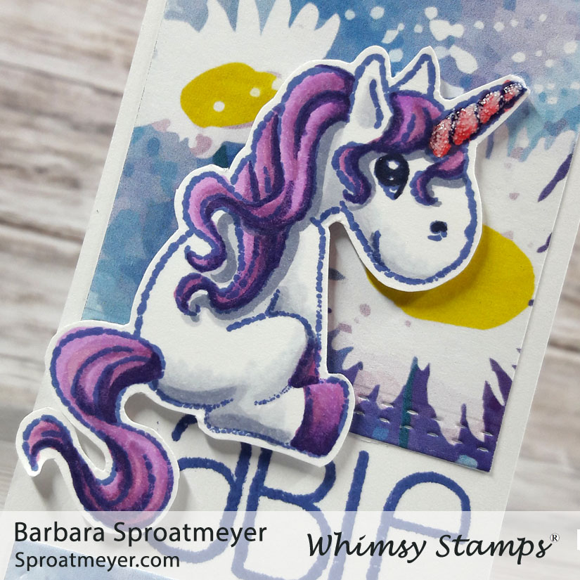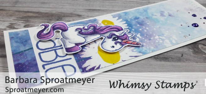 A while back I had stamped an extra unicorn from the Polka Dot Pals Mason set. I’m not sure if it was a good stamp or not enough room around it but I didn’t need it and set it aside. I figured I could use the back to re-stamp something. But a better idea came along and I ended up using it for this bookmark.