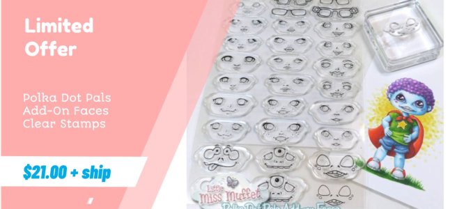 I have limited quantities of the retired set Polka Dot Pals Add-on Faces clear acrylic set that was released at Little Miss Muffet Stamps. All my extra inventory was stored away and I was able to find these. They are available on eBay until all quantities are sold. They will not be re-ordered or restocked. (I will delete this post once all inventory is sold out.)