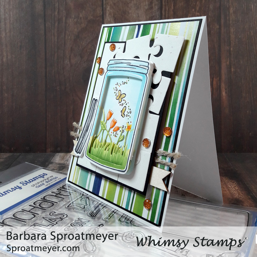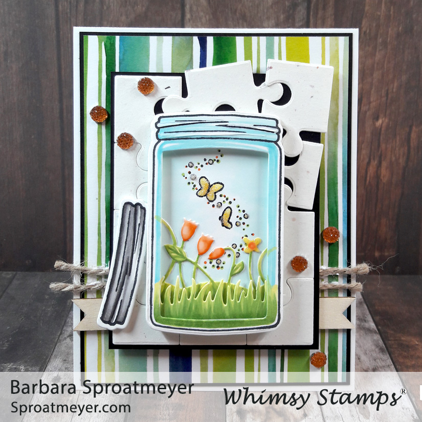This is an easy pairing and if you don’t have them both, I’m sure this will temp you. For this project I’ve used the Atlas Jar clear stamps with the Mason Atlas Jar die set. It was a must have in my stash and I’ve so much enjoyed using both the die set and clear stamps. This jar is just the right size if you find the larger one too big. Of course, I love and have that one too. Just sayin’.