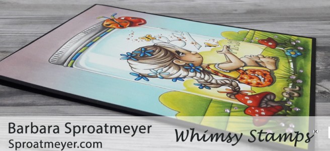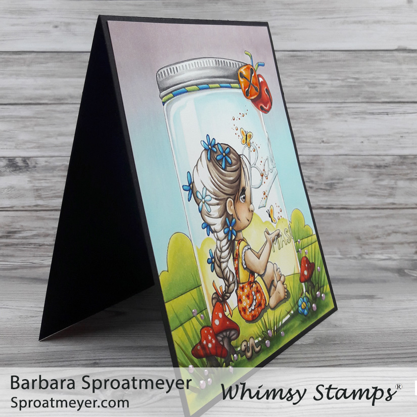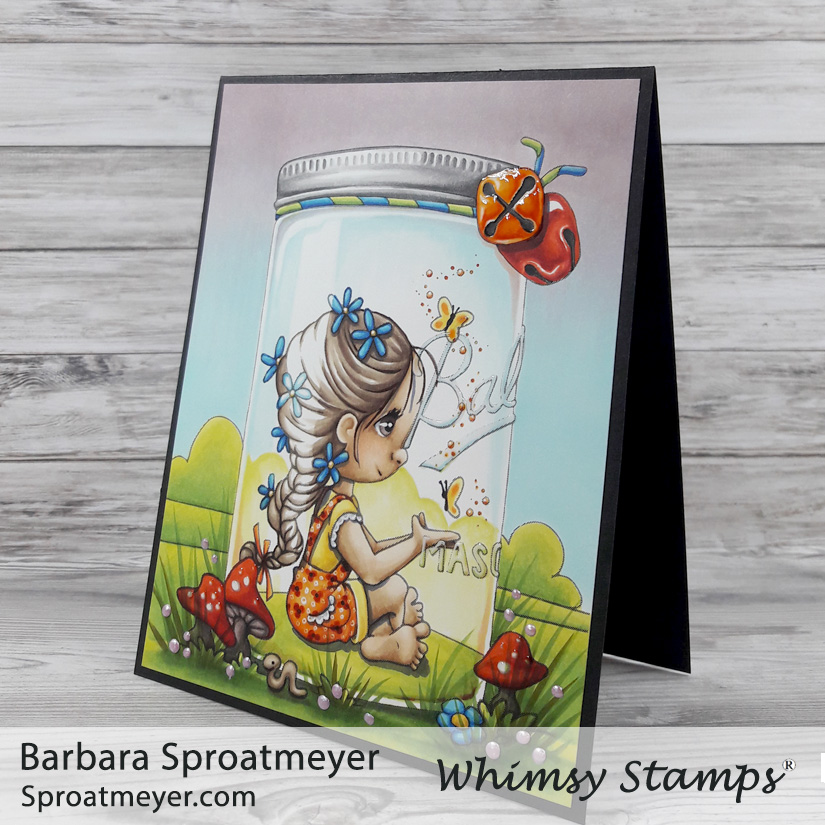 Yesterday was a release day at Whimsy Stamps and there are some adorably fun images to play with… including two new Polka Dot Pals digital coloring scenes! For my post today, I’ve featured the second image, Polka Dot Pals Imogen in Mason Jar. These digital coloring scene are da’bomb! (If I may say so. LOL)