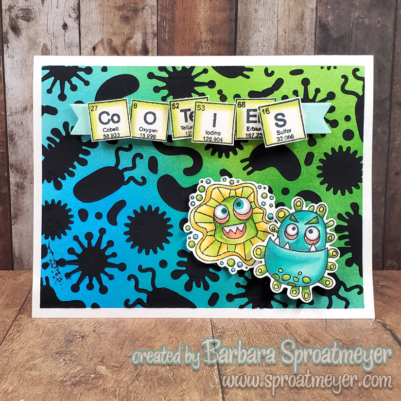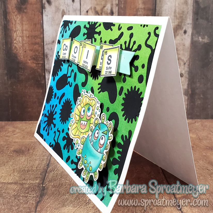 I actually have two periodic words stamp sets from two different companies. It seems that no matter what I want to make, it’s not enough. I wish I had the whole chart of elements to work with! But for this card, I fudged it by covering up the letters that I didn’t need to spell out “Cooties.”