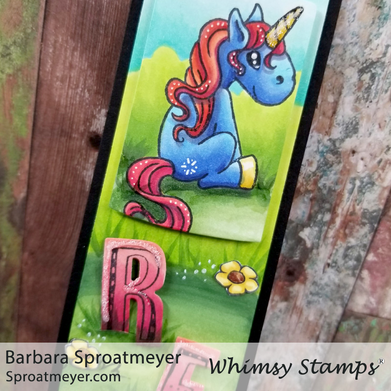 Sometimes I have left over images that I’ve stamped that are sitting on my desk for no reason. I don’t like to toss them out so they sit there until I find a use for them. This is one of those cases where I had an extra unicorn from Polka Dot Pals Mason. I needed to test out a new color combination so I nabbed it and colored away.