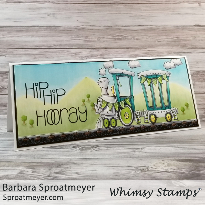 I created this scene a while ago but made two of them just in case I messed up. Turns out that even if I did, I completed the project anyway and forgot about them. So I had an extra laying around and picked it up to color. This is Linking Train and is an image I drew for Whimsy Stamps. I love this set! It’s perfect for all occasions and I especially like ot use it for birthday cards.