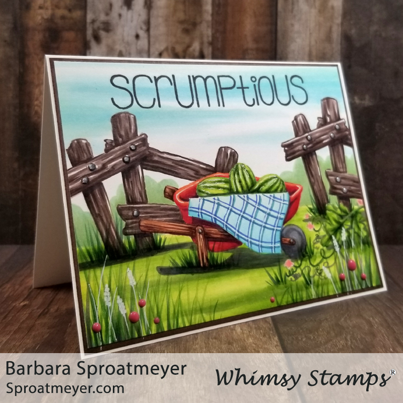 I finally got around to coloring the Fill a Wheel Barrel set from Whimsy Stamps and loved it! This is what I colored in the free coloring session yesterday. I got some direction on what elements to add and this was the end result.