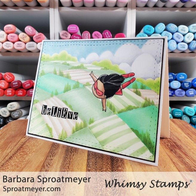 The new releases this week from Whimsy Stamps is a fun expansion on the comic book theme but instead of going super hero, I decided I wanted to create this card. Even if you’re a super hero, sometimes you just need to take time out for yourself. This background should look familiar and if you want to learn how to color it then check out my Zoom Coloring Classes and select the Orlando Owl class.