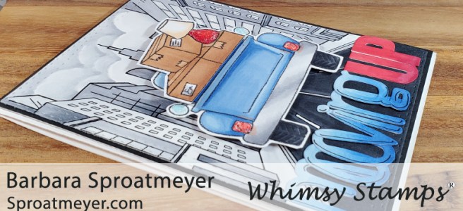 Oh ya, we’re moving on up to the east side! With the new City Street Background rubber stamp, I was looking for different ways to use the background without having a hero themed card. While I was jotting down my idea, I found that I was singing two songs in my head… the Jefferson’s theme song “Movin’ On Up” and the Petula Clark’s “Downtown” song. (Oh I hope that doesn’t date me! LOL) So today’s card is an ode to Jefferson’s theme song and pie.