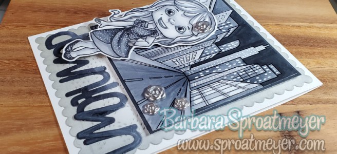 Yesterday I mentioned that I had two songs stuck in my head while coloring this background and today I’m tipping my hat to the second song – “Downtown” by Petula Clark’s song. I also chose to go with black and white since the song was recorded in 1964 and this combination of images reminded me of the original music video. For this little gal, Polka Dot Pals Ophelia, she’s so happy because she everything is gonna be alright now, she can forget all her troubles, forget all her cares and go downtown!