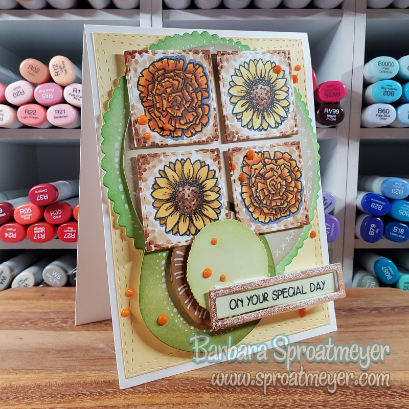 I’m pulling out some oldies but goodies for this card and taking the opportunity to use the Flower Tiles. I loved the last Boho card I made with this combination using blues and teals so I was eager to try it again. This time I chose a yellow and green combo but I’m not sure I like it as much. It’s different and not what I expected. However, parts of it are growing on me. Sometimes there’s a winner and sometimes it’s a learning curve. How do you think it turned out?