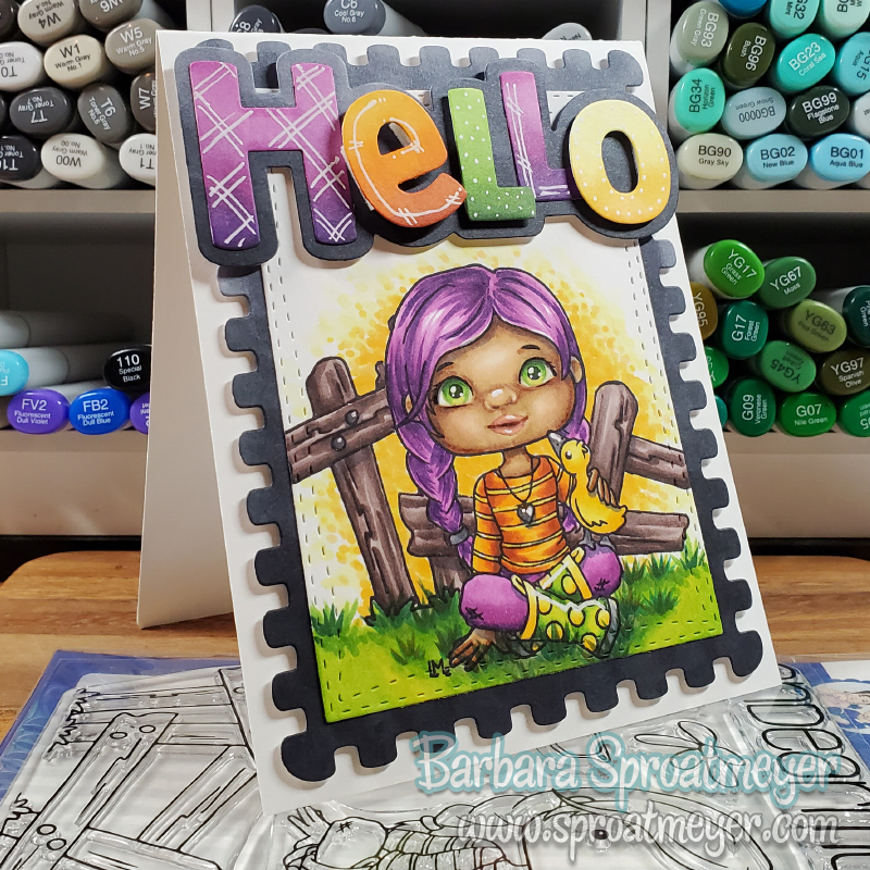 This Hello Word and Shadow die set is one of my favorites and it’s so fun to color! I like to color each letter and decorate it a little different then pop some of them up with foam tape. It adds so much to the card and helps feature the image too. This is Polka Dot Pals Fern (is now available here!) and she’ll be an exclusive here on my blog but for now you this card features the Polka Dot Pals Faces that I’ve used. You can use these faces on all the Polka Dot Pals so if it isn’t in your collection then I think you should add it to your cart. I colored this gal Live on Facebook a little while back. Which reminds me, we have some winners to announce! Stay tuned for another post later today…